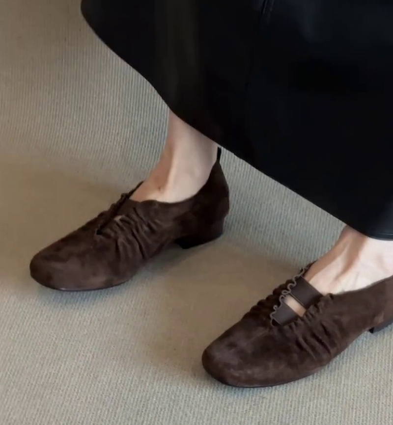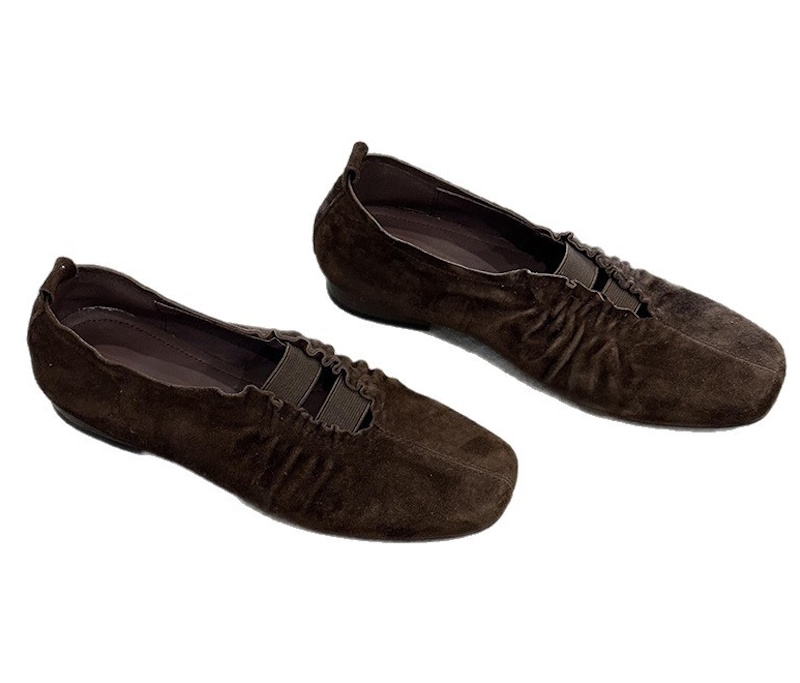 Leather flat gathered pleated pumps shoes レザーフラットギャザープリーツパンプスローファーシューズ [2510-ax977168898410]