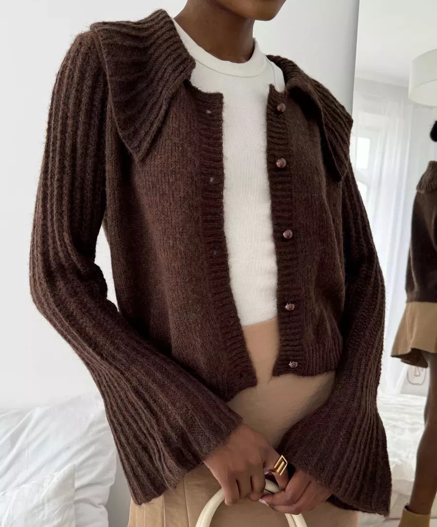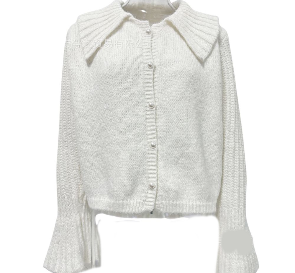 Big collar bell sleeve knit cardigan sweater knit ビッグカラー襟ニットカーディガン